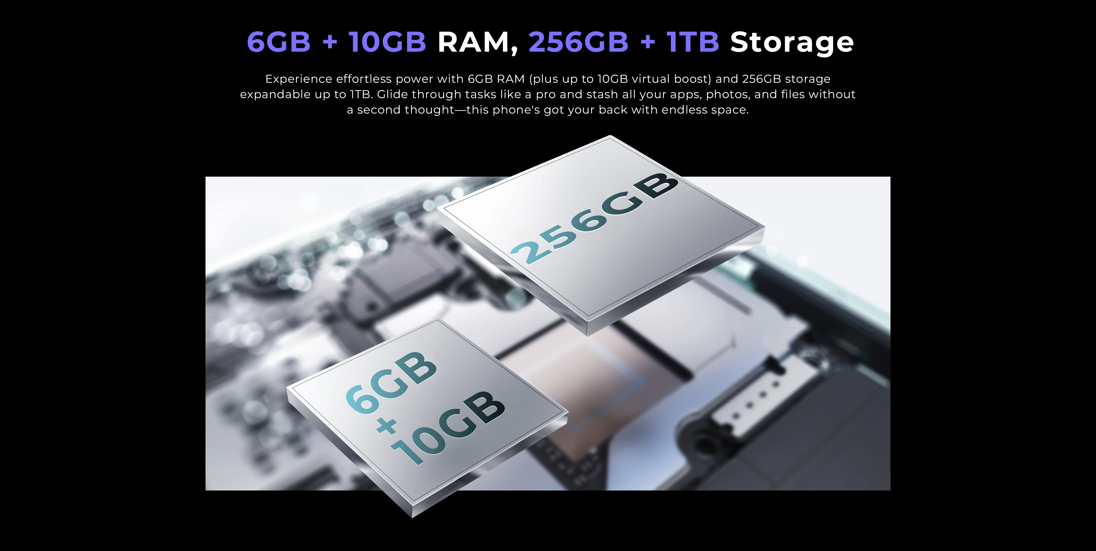 - Memory: 16(6+10)GB RAM + 256GB ROM