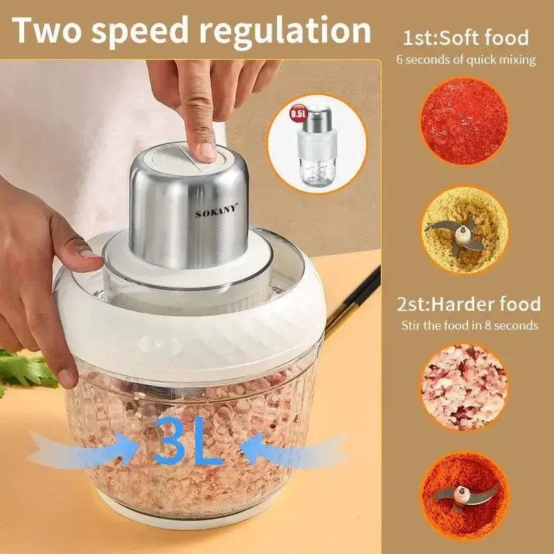 2 Speeds to Adjusting: Equipped with two speeds, this food chopper allows you to adjust the speed according to your needs. Speed â…  is perfect for soft or small ingredients, while speed â…¡ is ideal for harder ingredients or larger volumes. With precise speed control, you can produce the perfect texture for your ingredients.