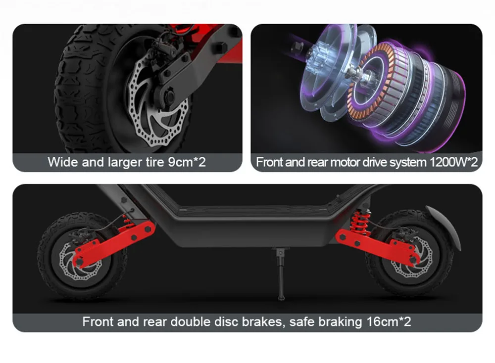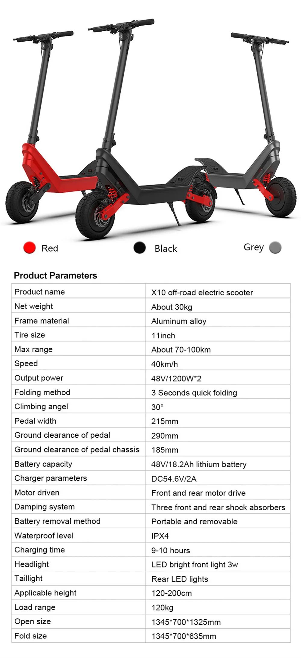 HUANCI X10 Electric Scooter 2000W 50km/h 18.2AH Foldable e scooter Dual Motor 11 inch electric scooter adults