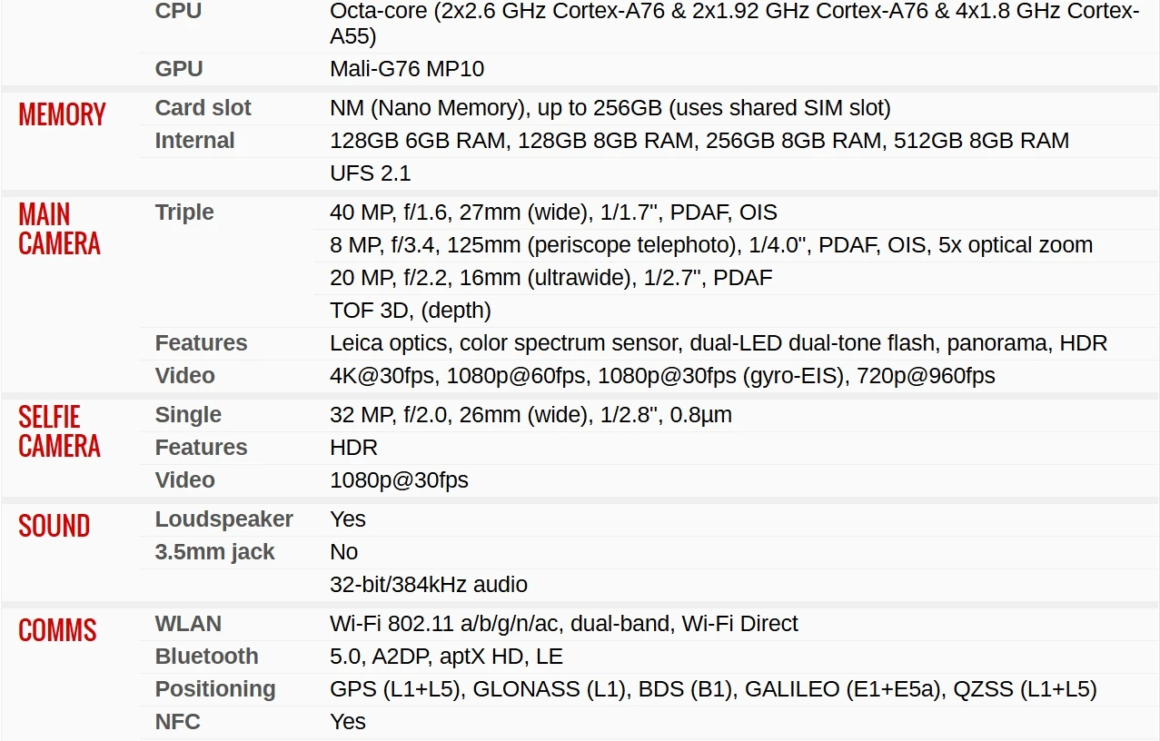 • Rear Camera Pixel: â‰ˆ 40 MP