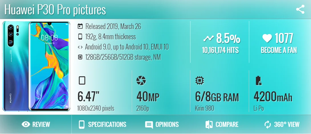 HUAWEI-P30 Pro,Smartphone Android,6.47 inch,8GB RAM,512GB ROM,Cell phone,40MP Camera,Dual SIM,Google Play Store,Mobile phones
