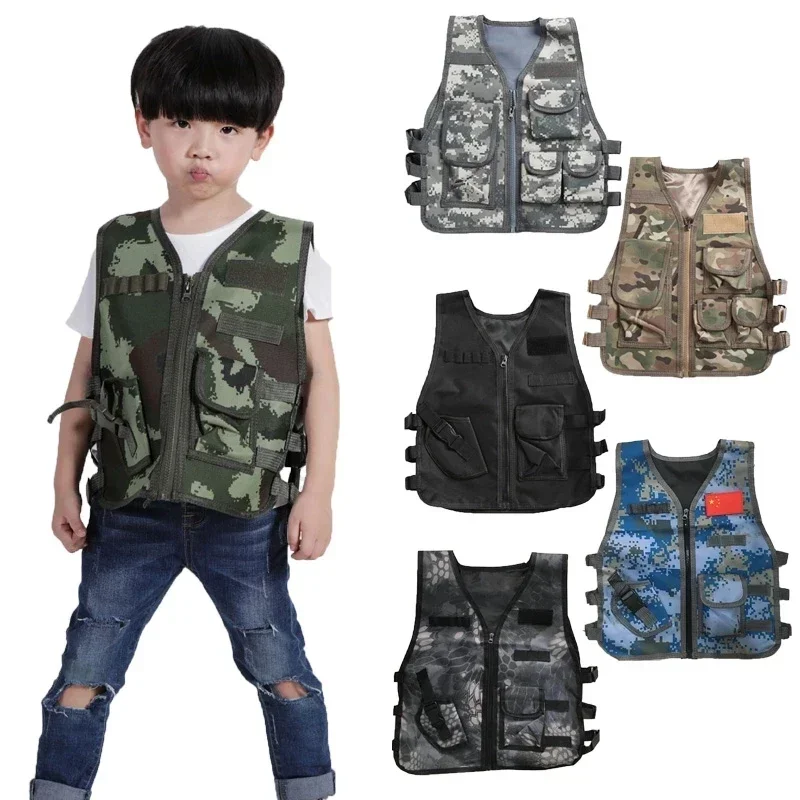 Military Kids Camouflage Hunting Clothes Boy Combat Equipment Chirdren Tactical Army Vest Cosplay Costume Airsoft Sniper Uniform