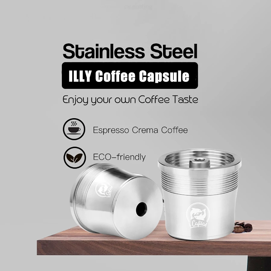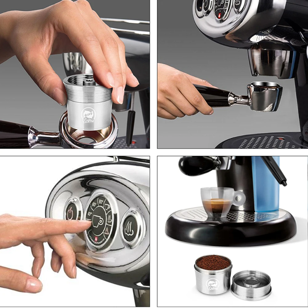 ICafilas For Illy Coffee Machine Refillable Filters Stainless Steel Reusable Metal Capsule & Tamper Spoon