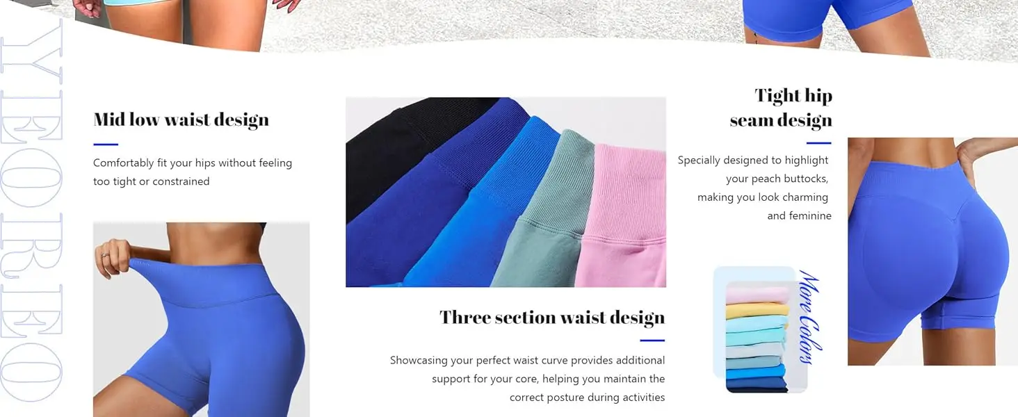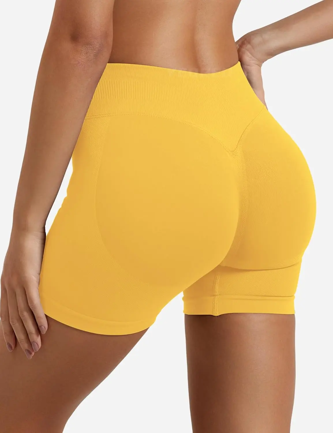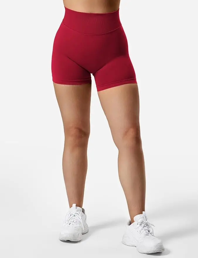 Impact Gym Shorts Women Fitness Sports Biker Shorts 4.5″ Low Ribbed Band Yoga Shorts Workout Scrunch Butt Seamless Leggings