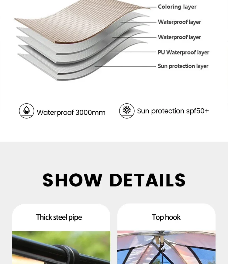 • Outside Tent Waterproof Index: 2000-3000 mm
