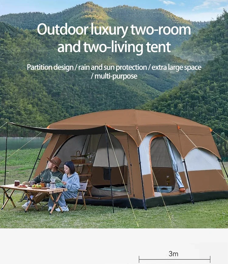 In 2025, upgrade to a two-bedroom, one-living-room outdoor folding portable windproof tent