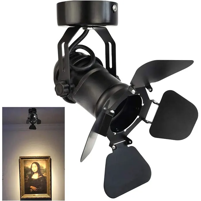 Industrial Vintage Ceiling Spotlight Lamp with Barn Door Foldable Flippers LED Spot Lights for Hallway Art Light Stage Theatre