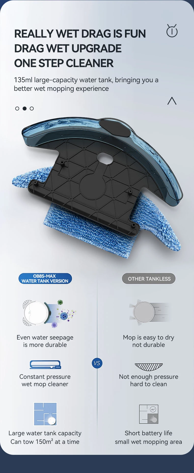2.The hanging water tank mop has relatively large friction. If you use this product on the blanket, please remove the hanging water tank and operate it