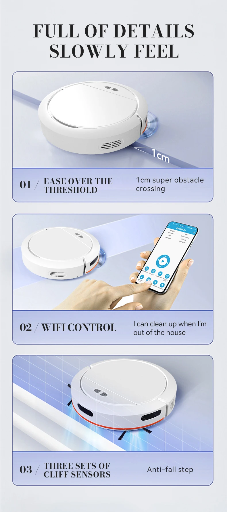 1. One-click startup, sweeping, mopping, vacuum cleaner;