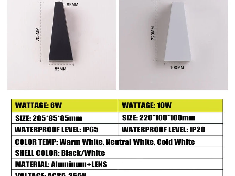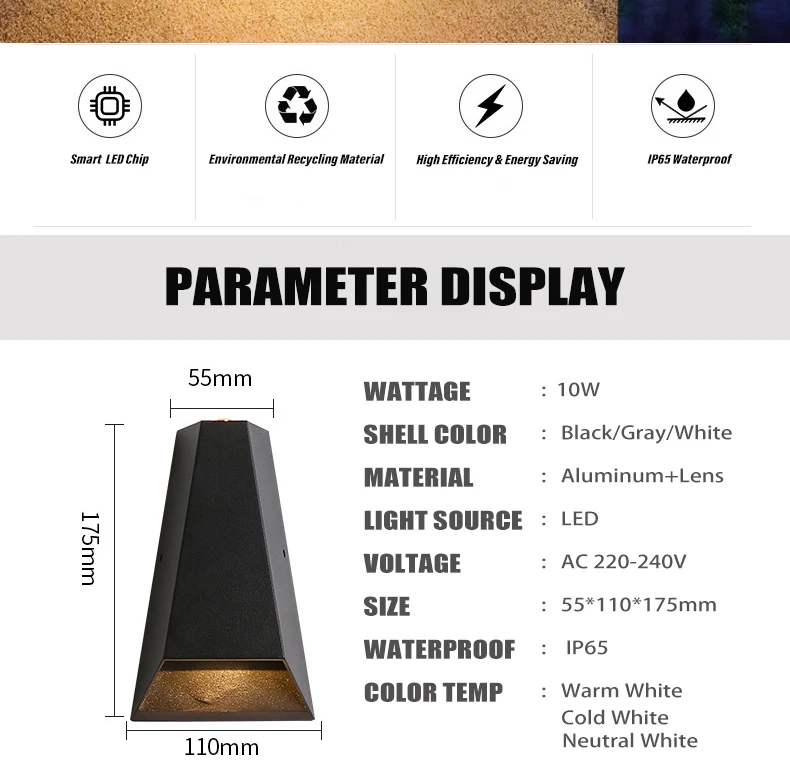 IP65 Waterproof LED Wall Lamp Outdoor Aluminum 6W 10W Wall Lights Porch Garden Fence Indoor Modern Nordic Sconce Lamps 85-265V