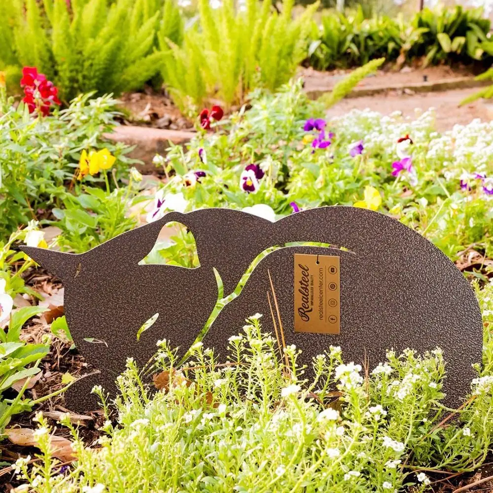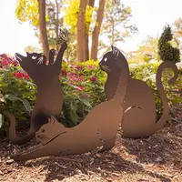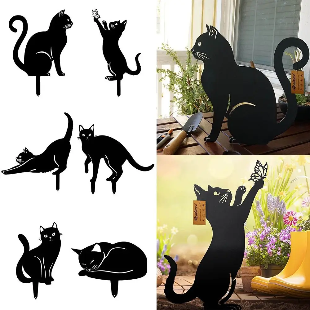 Iron Art Black Cat Garden Statue Silhouette Sculpture Outdoor Garden Backyard Decoration Weatherproof Cat Figurine Yard Art
