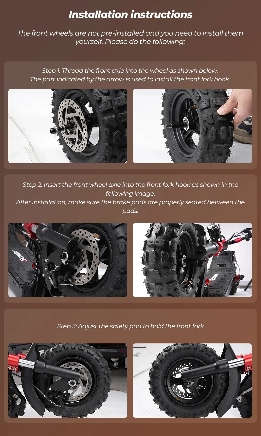 11-Inch Pneumatic Off-Road Tires: Large, durable, and shock-absorbing for a smooth ride on any surface.