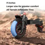 11-Inch Pneumatic Off-Road Tires: Large, durable, and shock-absorbing for a smooth ride on any surface.