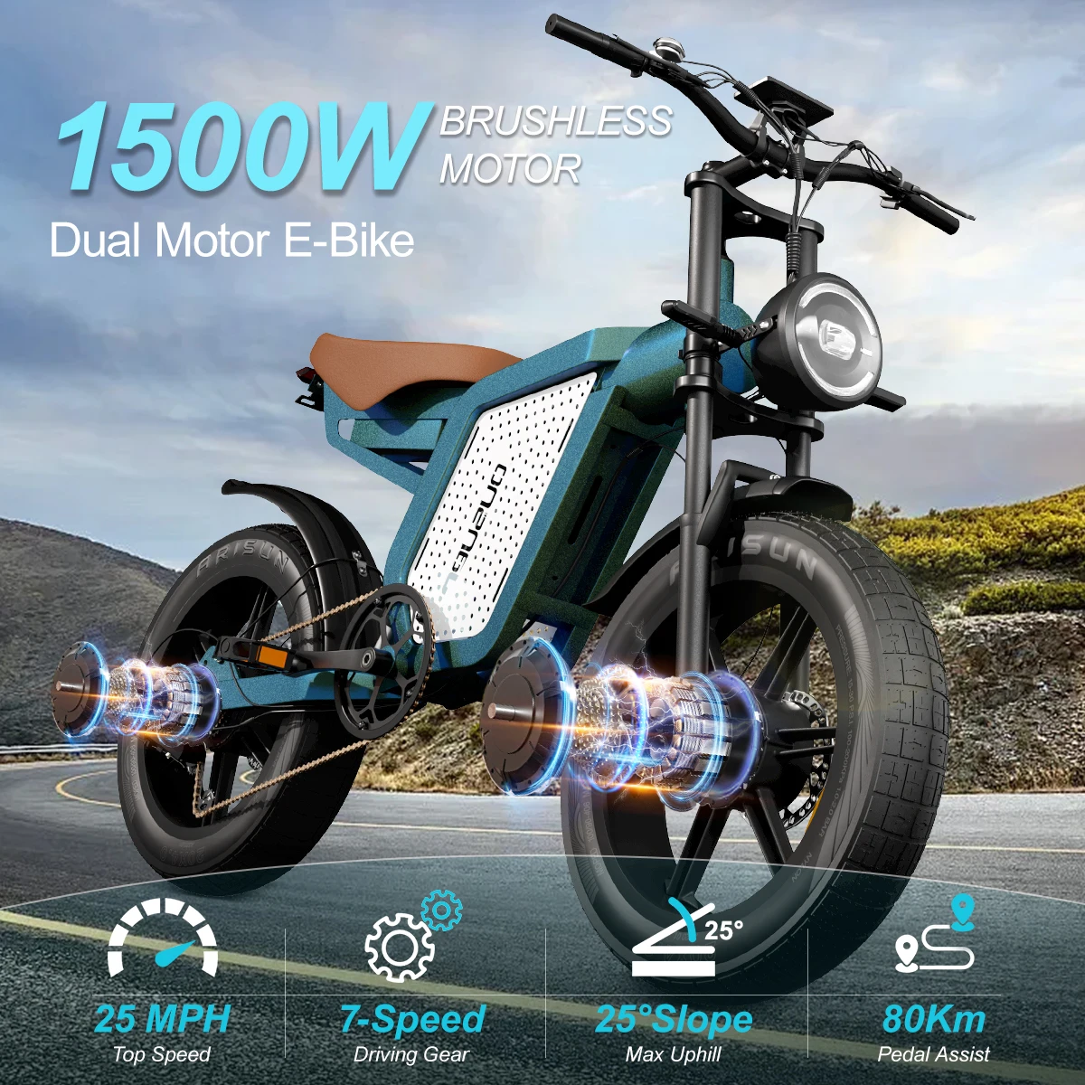 Jansno X60 Ebike Dual Motor 1500W 48V23Ah 20 Inch Fat Tire Full Suspension Electric bicycle Mountain Off-road Electric Bike