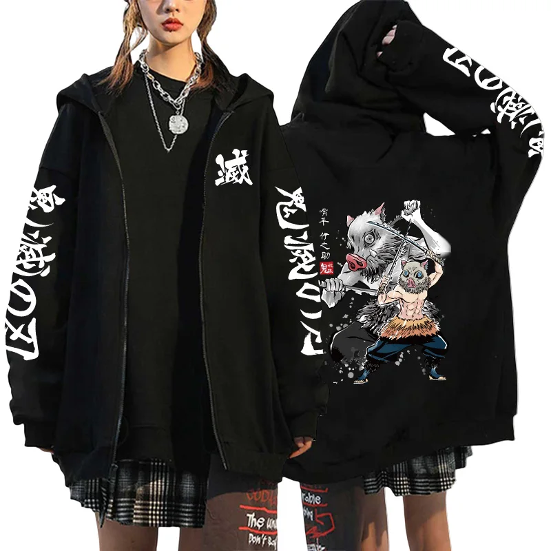 Be the first to review “Japan Anime Print Black Hoodie Woman Hooded Long Sleeve Zipper Jacket Tanjirou Zenitsu Inosuke Pattern Sweatshirt Autumn Coat”