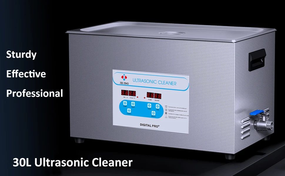 30L ultrasonic bath for garage, commercial or industrial use. It can contain stuffs which are are smaller than 19.7 × 11.8 × 7.87 inches.