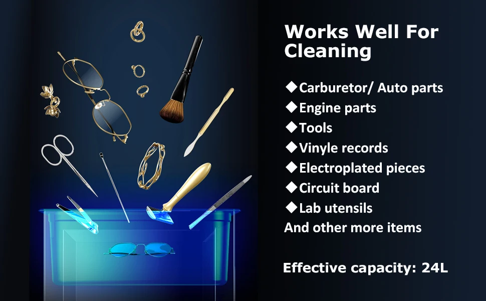 3. This ultrasound cleaning machine can widely used for cleaning carburetor, parts, 3D prints, records, circuit board, tools, jewelry, eyeglasses etc.