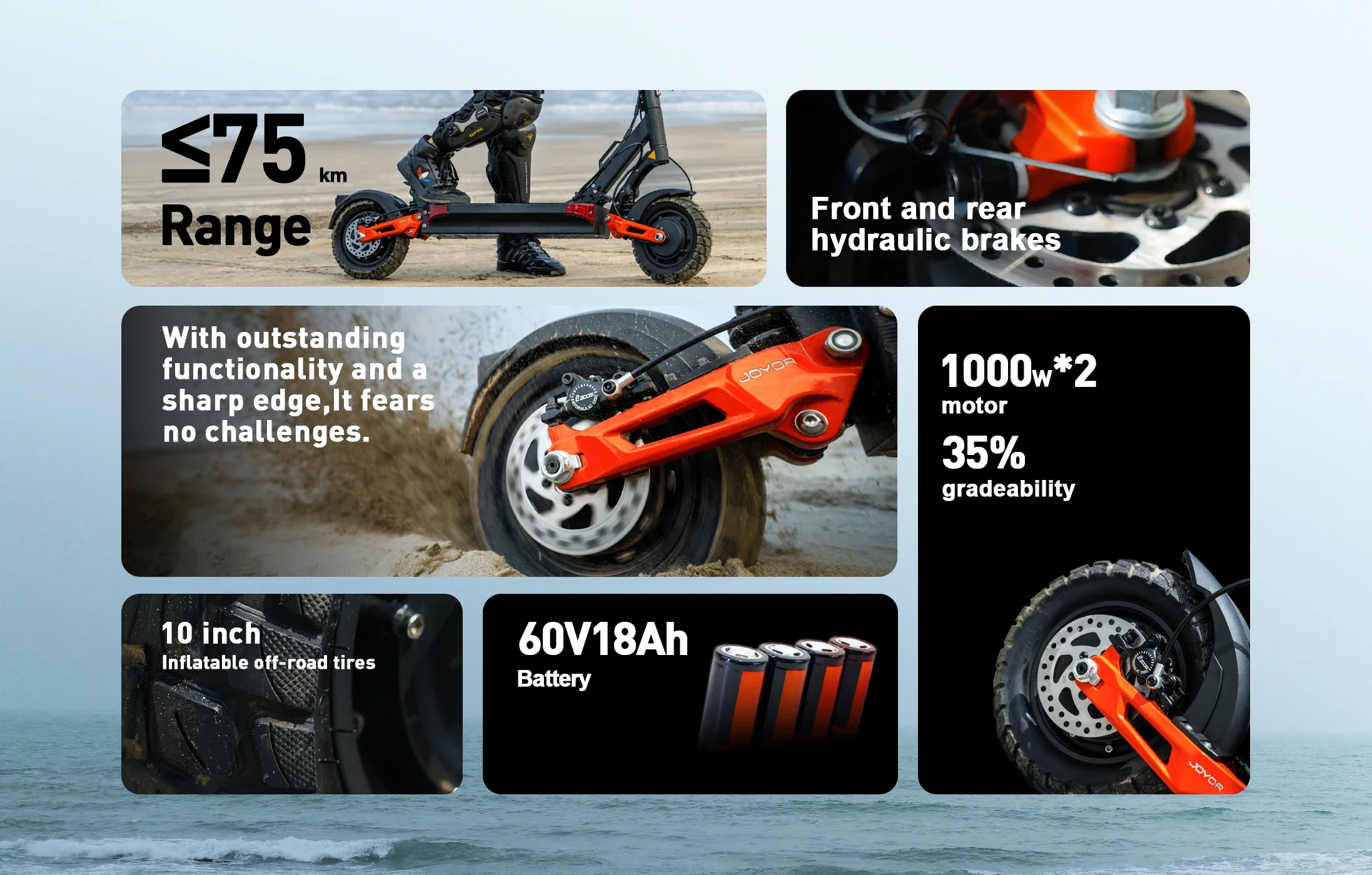 JOYOR T10 Electric Scooter 2*1000W Dual Motor 60V18AH Battery Off-Road Electric Scooter Hydraulic braking 10-inch tire E-scooter