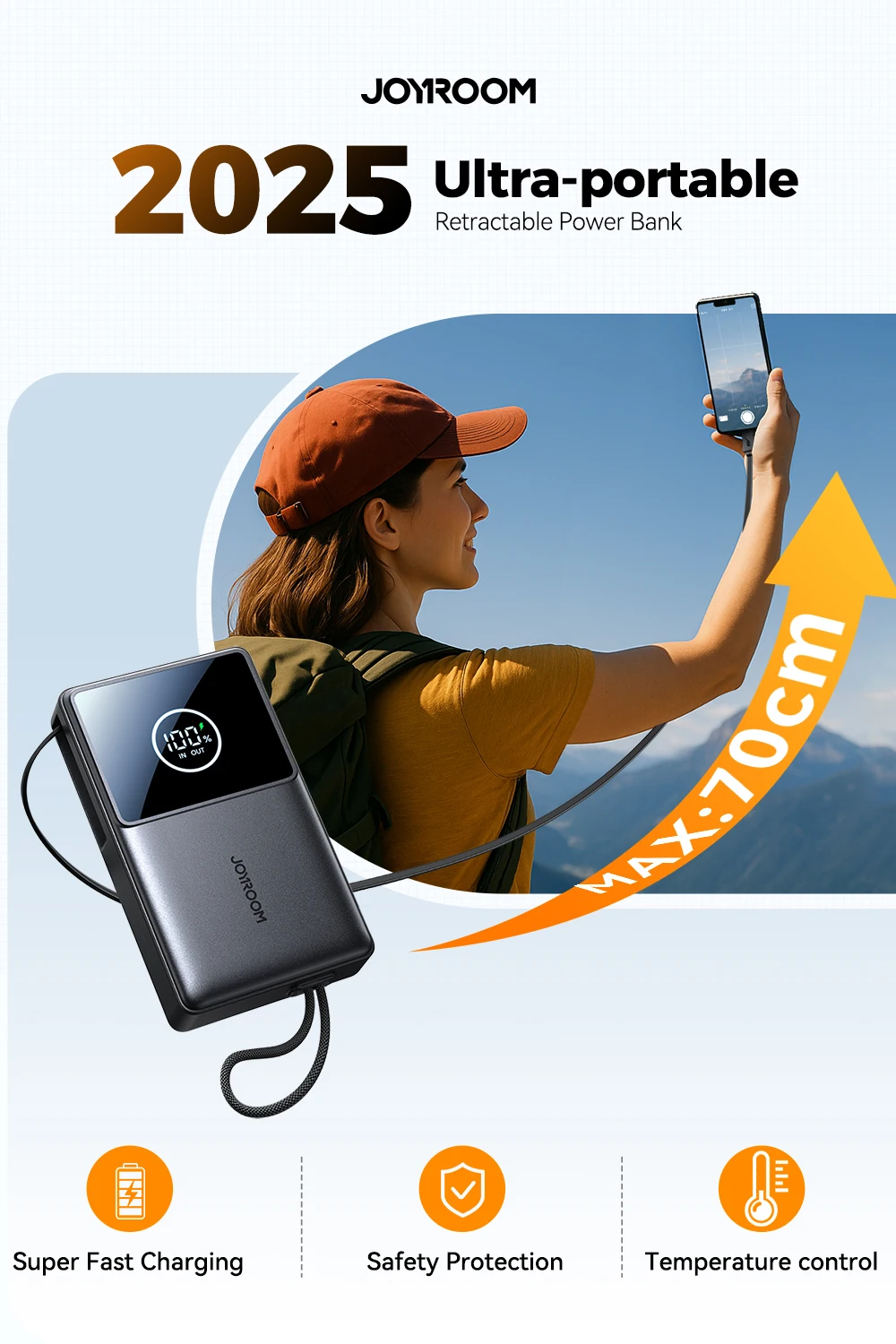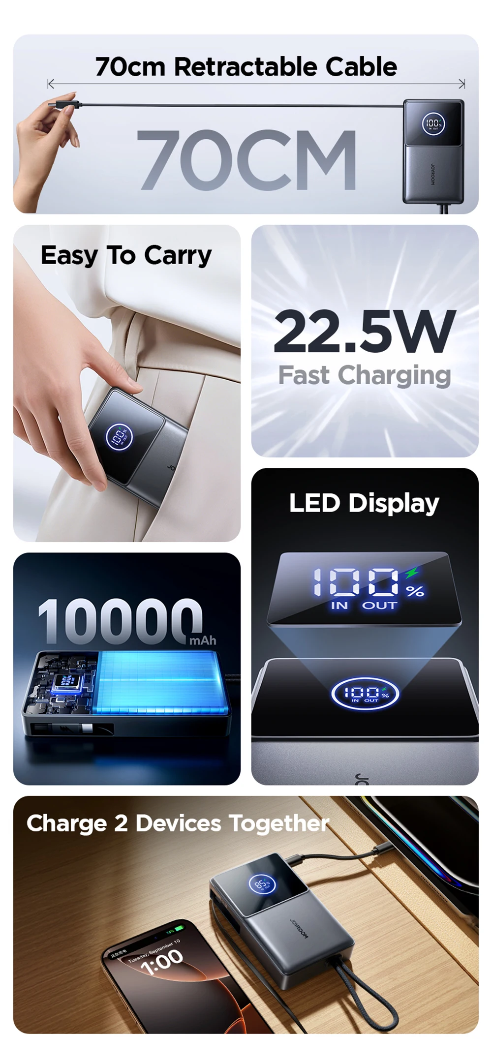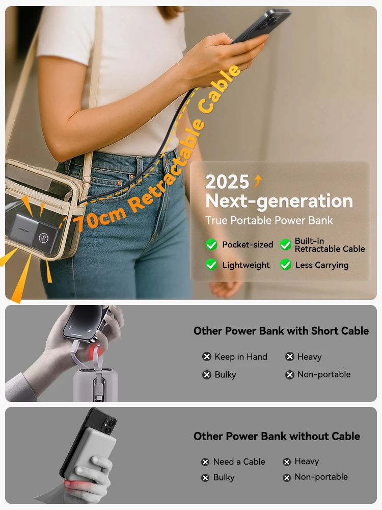 70cm Retractable Cable Power Bank
