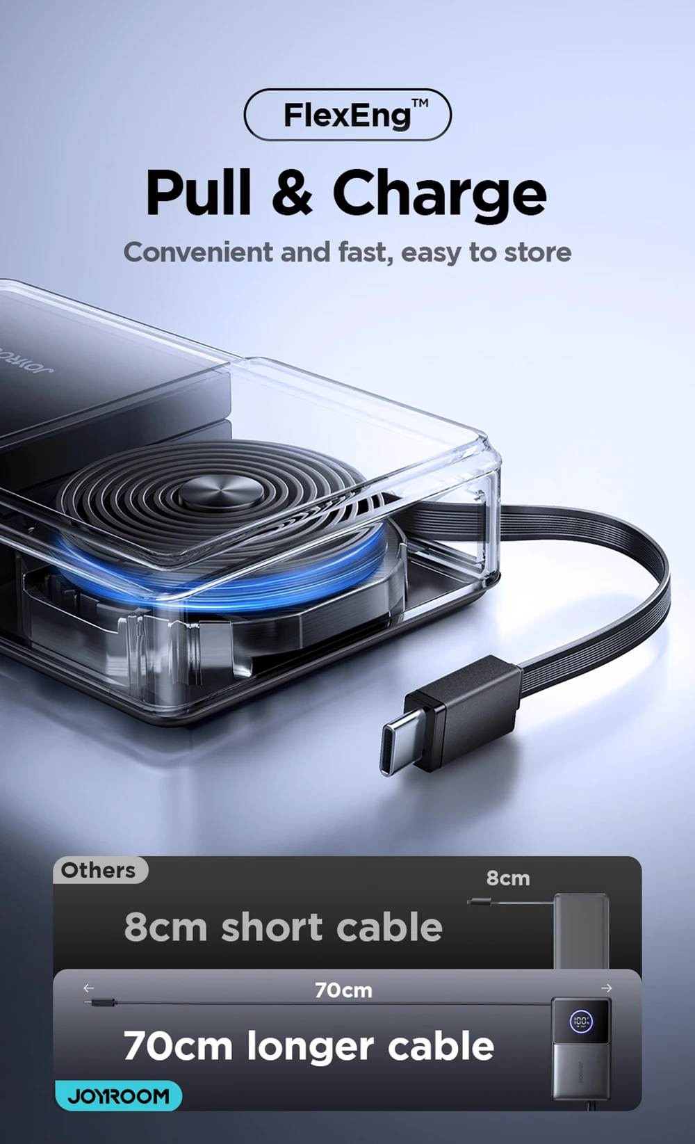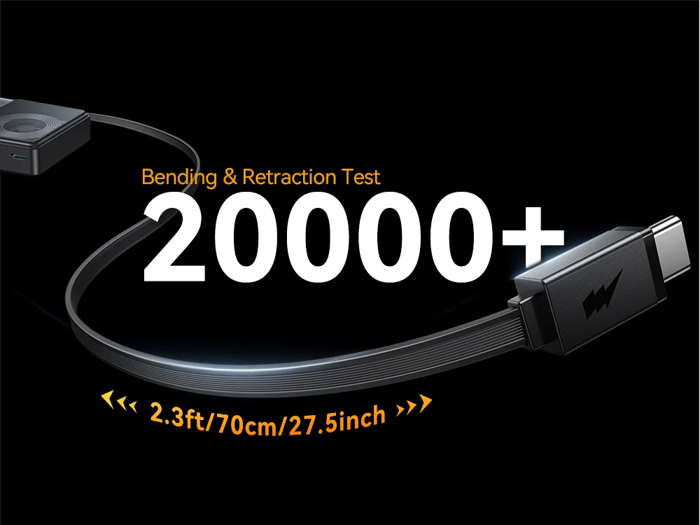 1.【With 70cm Type-C retractable cable】Adjustable length, easy to store, and reduces clutter
