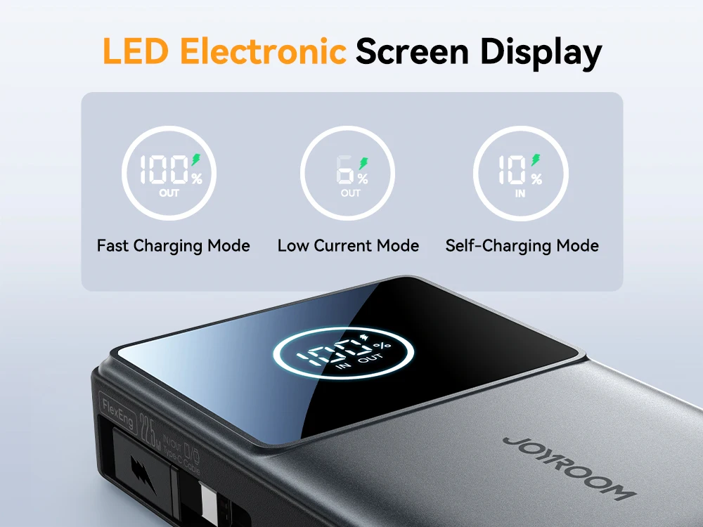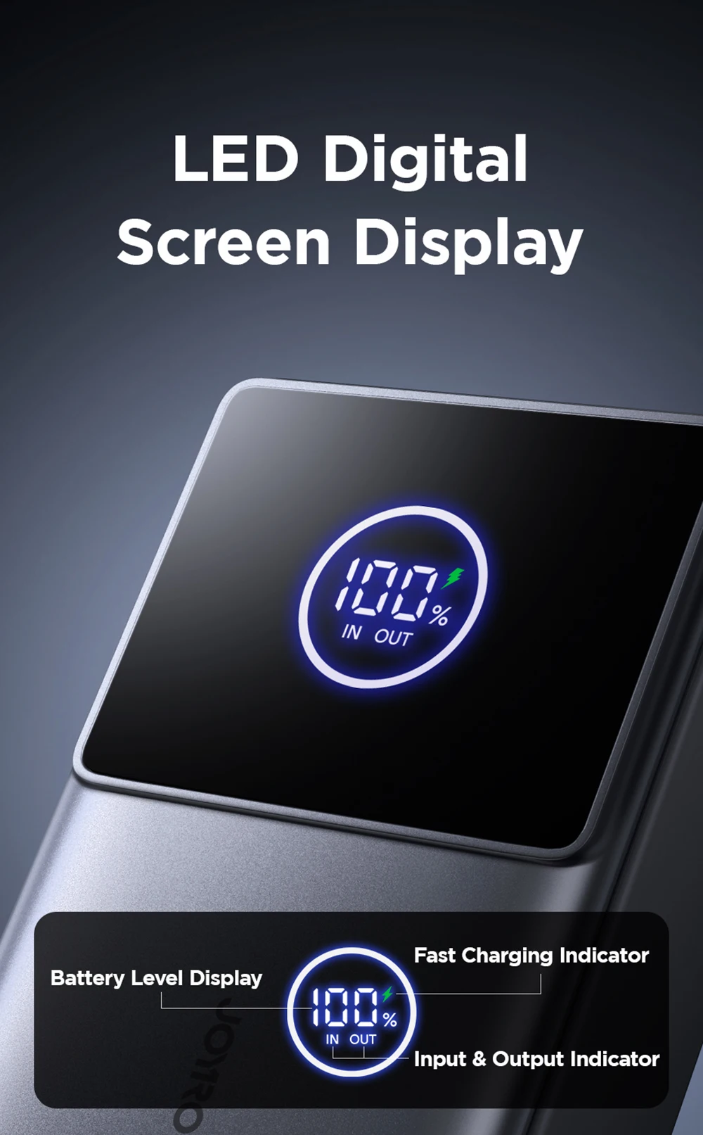 4.【LED Digital Screen Display】Real-time query of power and charging status (IN/OUT and whether fast charging)
