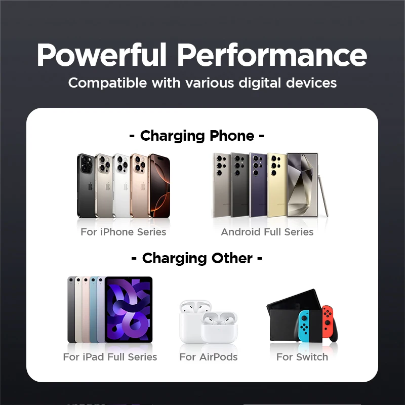 8.【Compatible with various devices】Can charge for iPhone, Android phone, tablet, watch, earphone and other devices