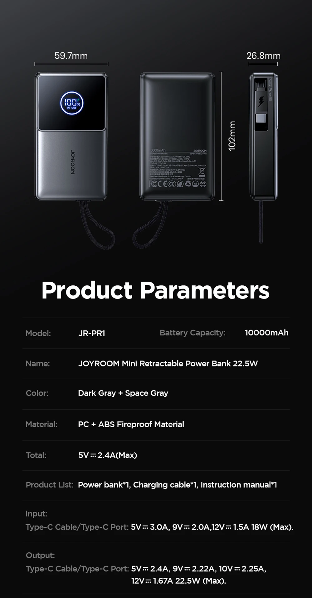 - Joyroom Model: JR-PR1
