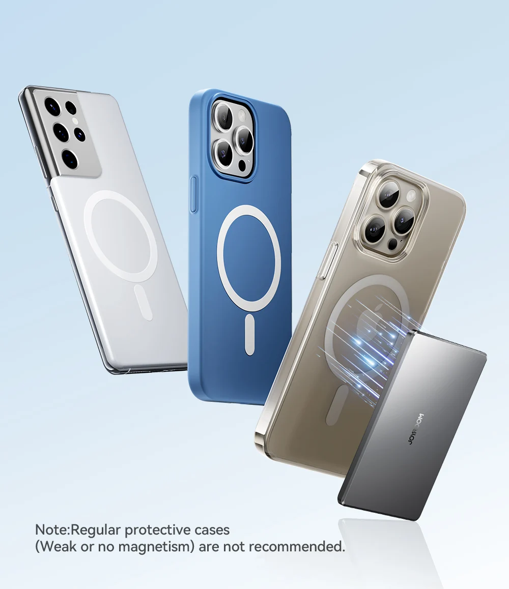 Regular protective cases(Weak or no magnetism) are not recommended.Perfect for Magsafe Case.