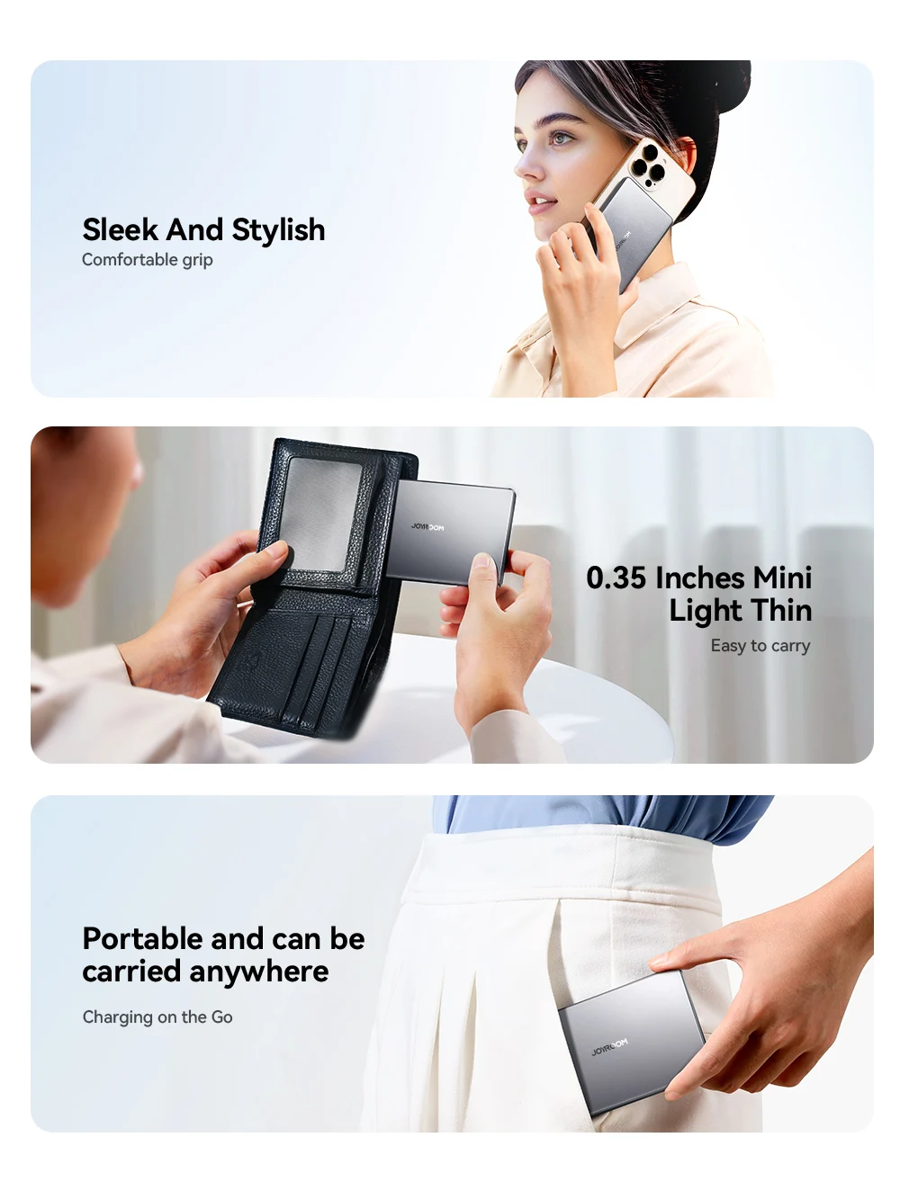 1.Slim and Powerful:Efficient 5000mAh lithium-polymer battery, only 0.35 inches thick. Ergonomically designed for lightweight portability, an ideal solution for daily mobile charging.