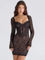 Be the first to review “JULISSA MO Autumn New Long Sleeve Stretch Lace Women Dress Black Low Chest Print Floral Skinny Elegant Party Evening Dress 2025”