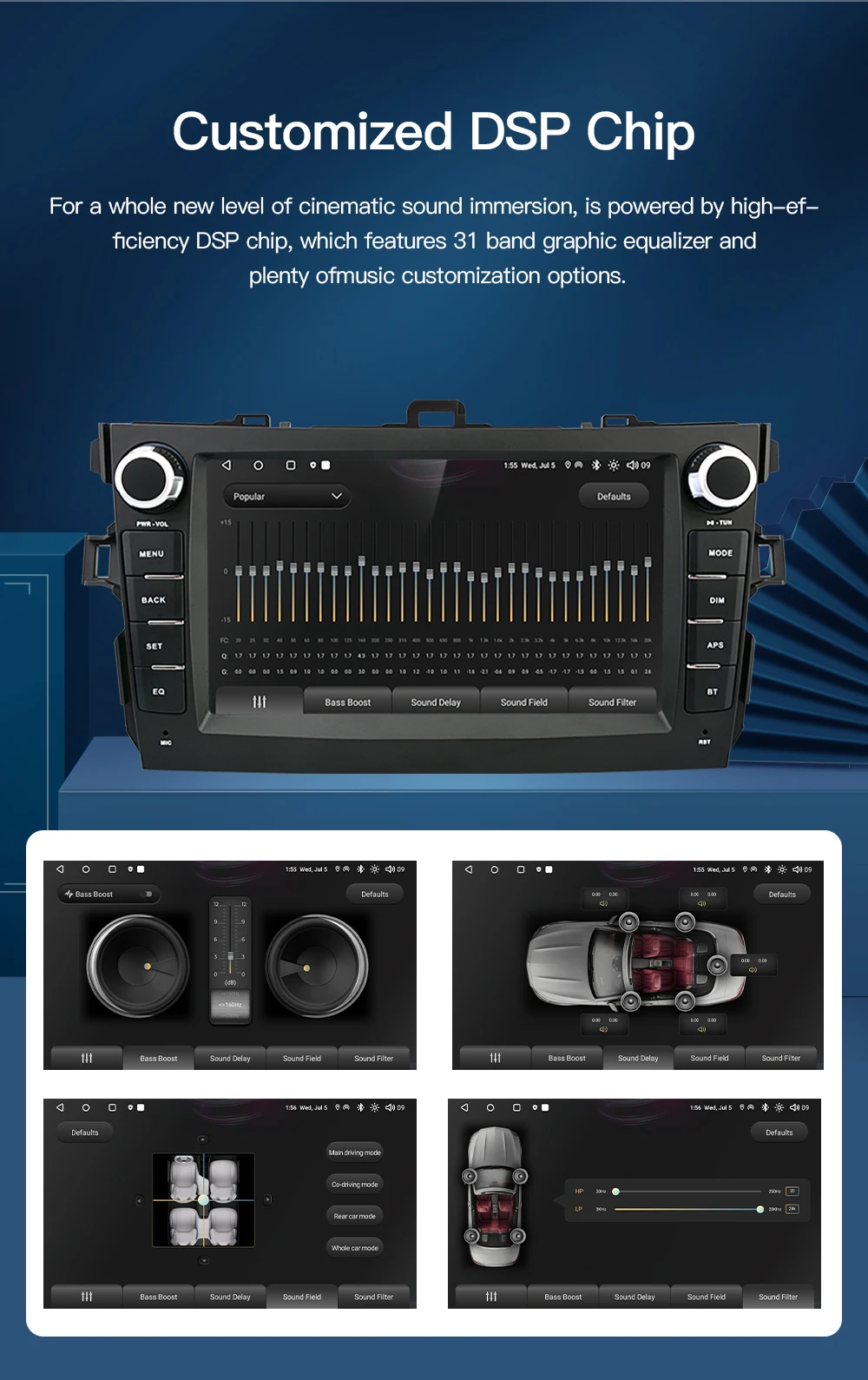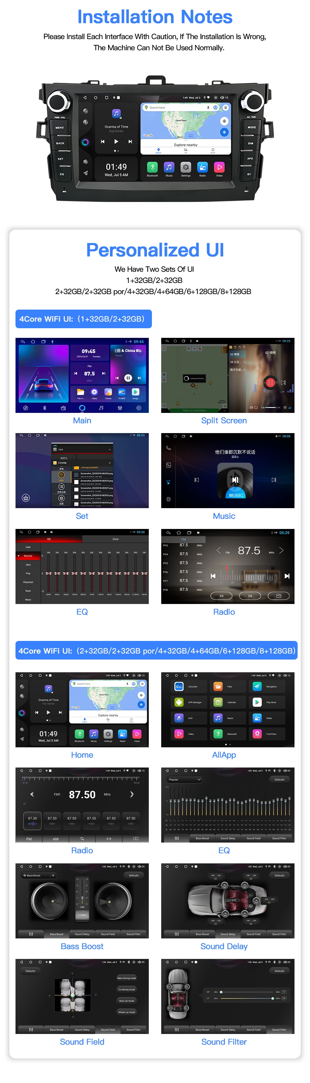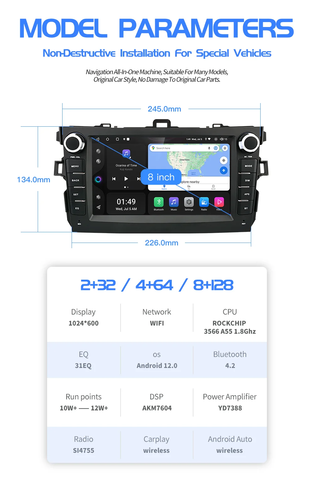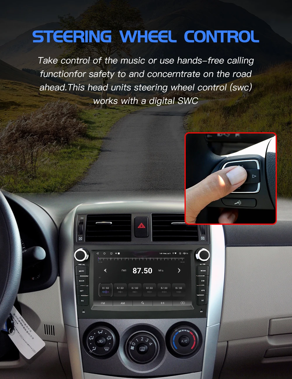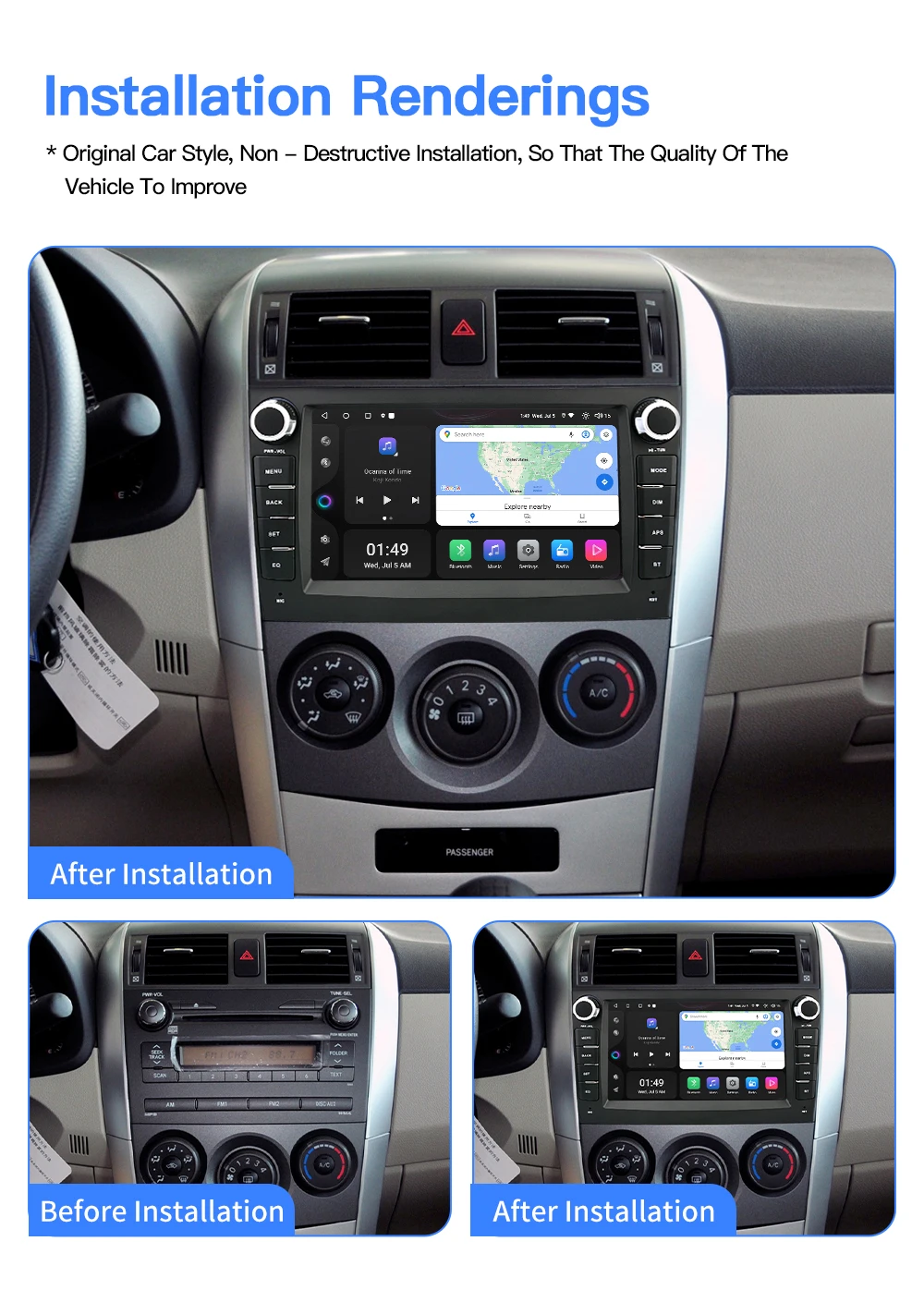 Kapud 8” Android 12 Car Radio Multimedia Video Player For Toyota Corolla E140 E150 2006 – 2013 GPS Navi CarPlay AUTO SWC