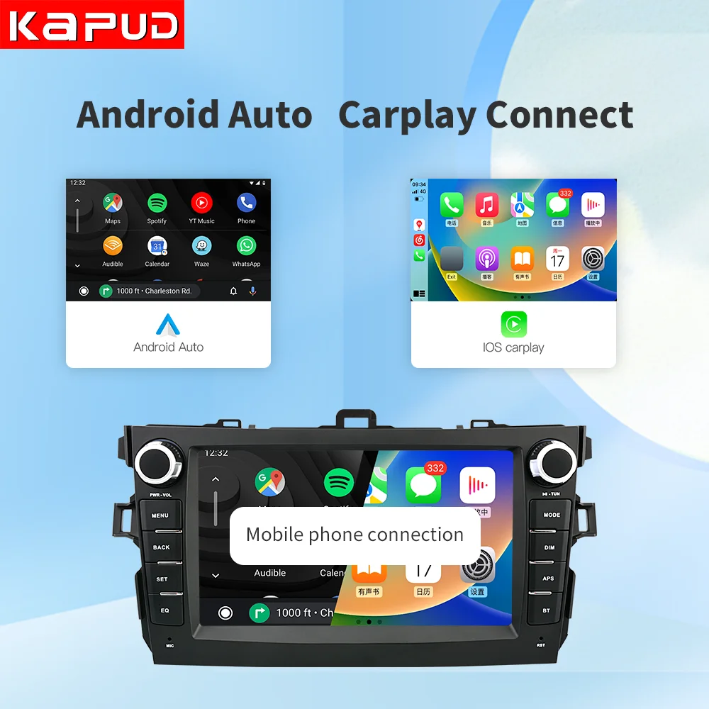 Kapud 8” Android 12 Car Radio Multimedia Video Player For Toyota Corolla E140 E150 2006 – 2013 GPS Navi CarPlay AUTO SWC