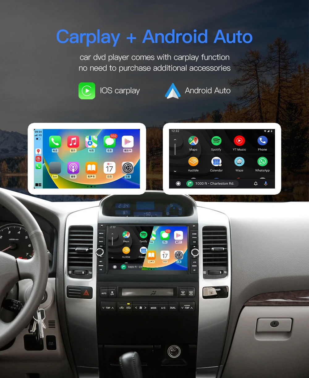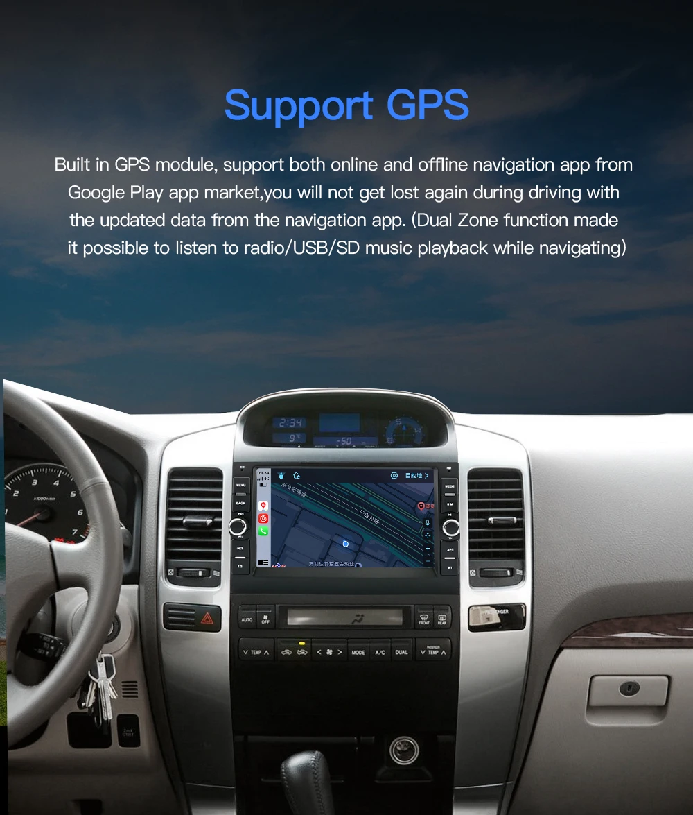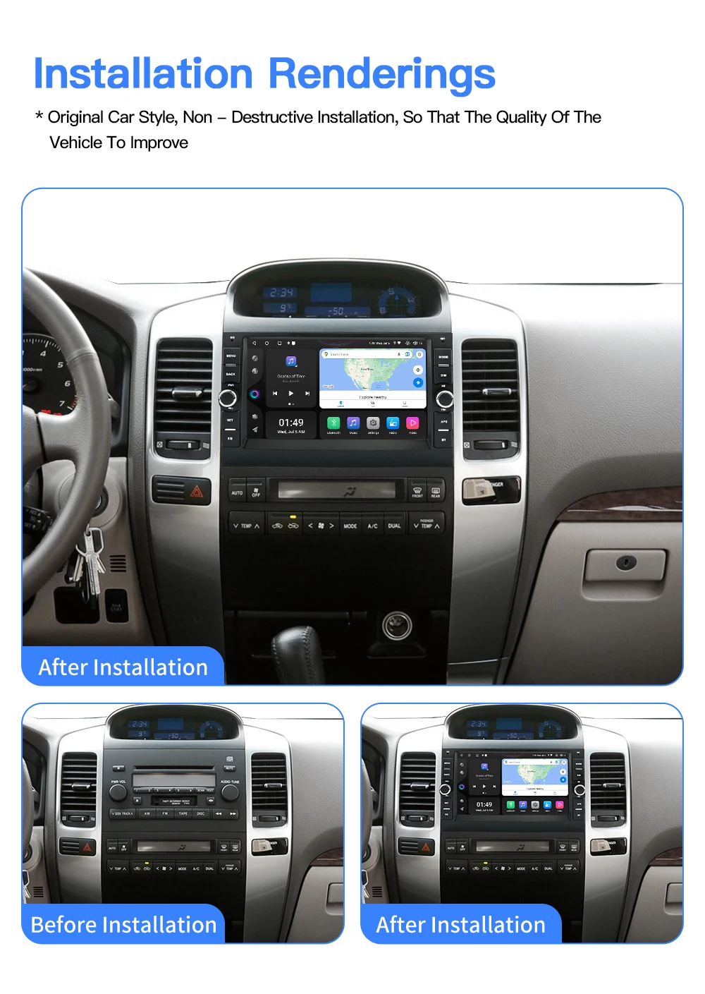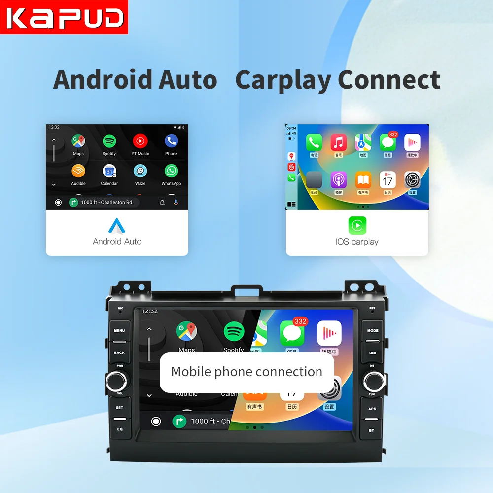 Kapud 8″ Android 12 Car Radio Navigation Multimedia Player For Toyota Land Cruiser Prado 120 2004-2009 Lexus GX470 CarPlay AUTO
