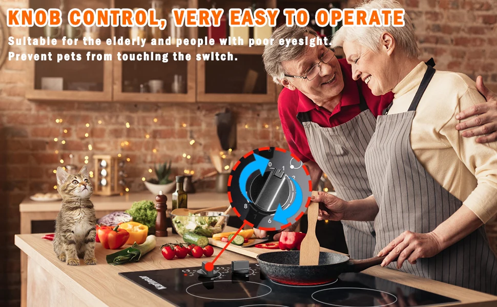 If there are elderly people in your family, if you don't like complicated sensor touch control electric cooktop, Karinear knob-control electric stovetop must be your best choice.