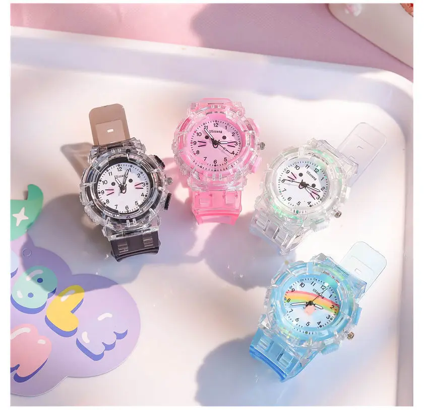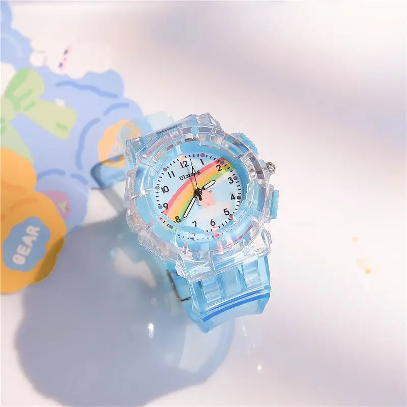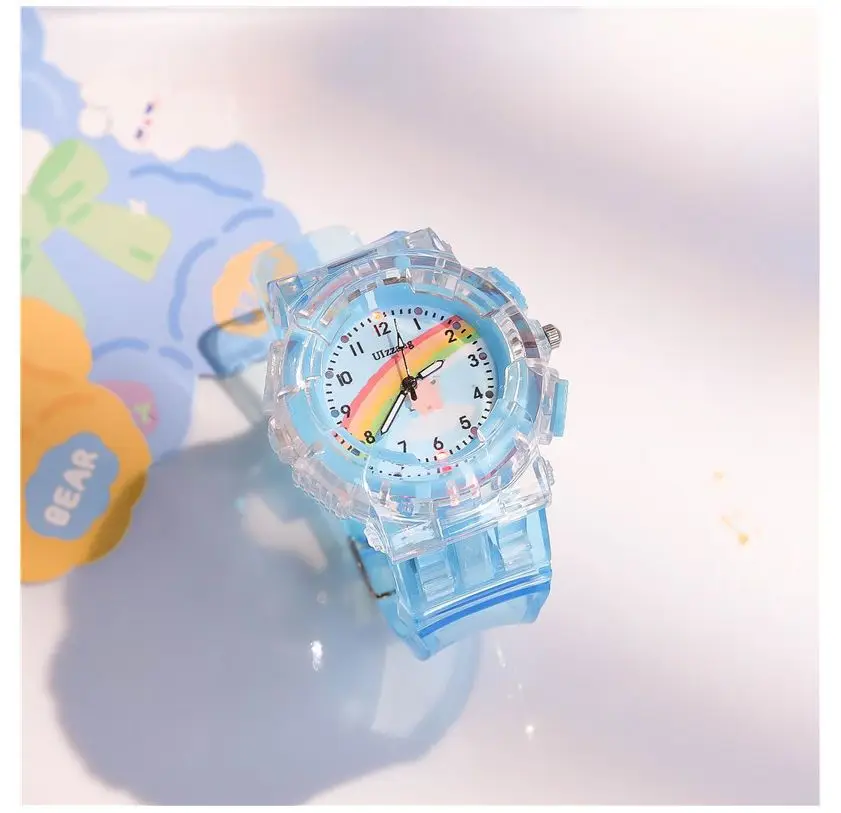 Kids Watch Kindergarten Lovely Rainbow Children’s Watch Cartoon Boy and Girl Quartz Casual Glow Watch Christmas Gift