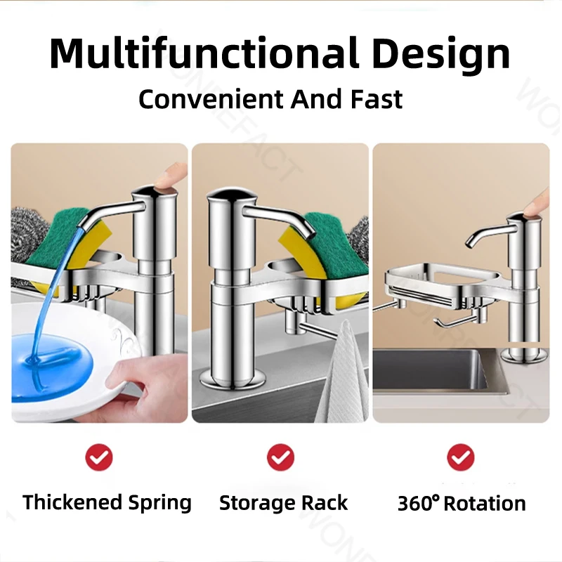 Kitchen Sink Soap Dispenser Sink Soap Dispenser With Tray Hook Extension Tube Detergent Countertop Dishwashing Liquid Soap Dispe