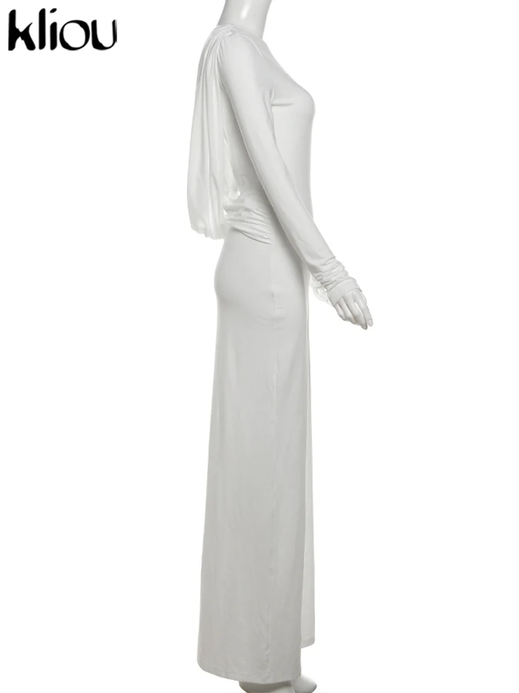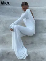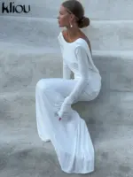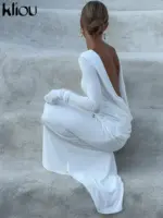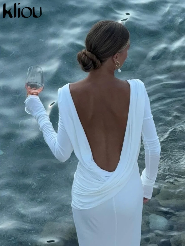 kliou Solid Elegant Women Maxi Dress Simple Fall Classic Trend Full Sleeve Swinging Backless Sheath Vestidos Mujer Evening Robe