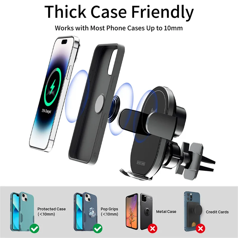 New Upgraded Technolog, compatible with cases10mm.No need to take off phone case (most of phone cases in the market except rugged, uneven case.)while charging.