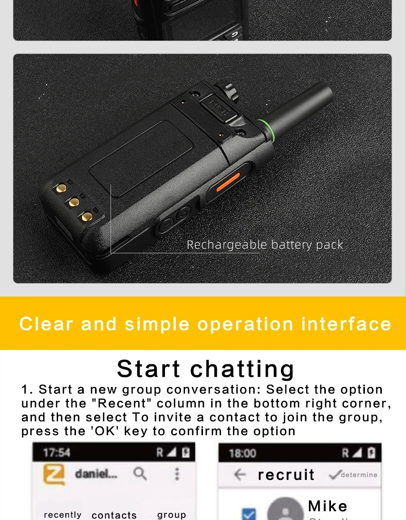 WALKIE TALKIES LONG RANGE : KSUN ZL18 is an Android walkie-talkie that supports WiFi.