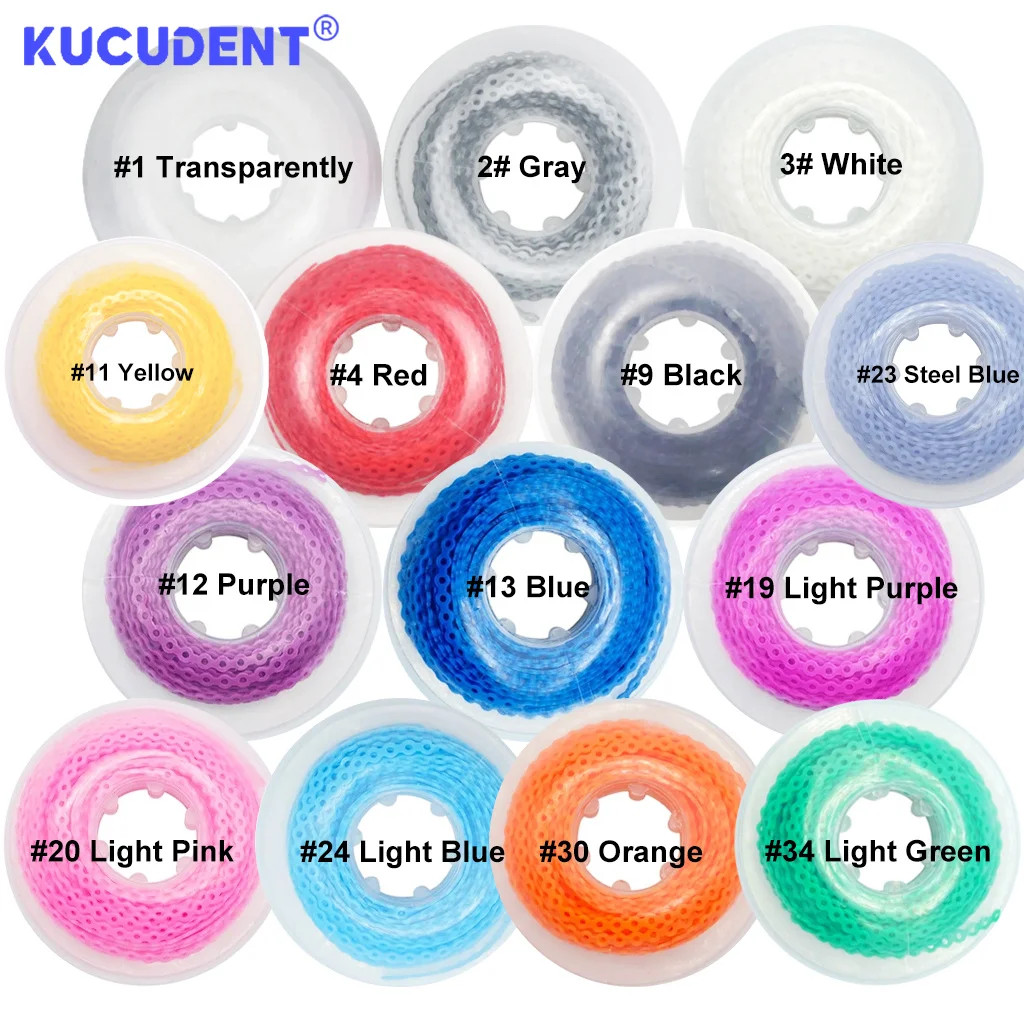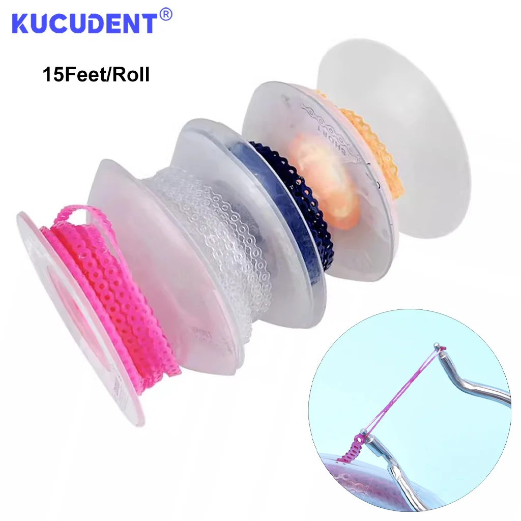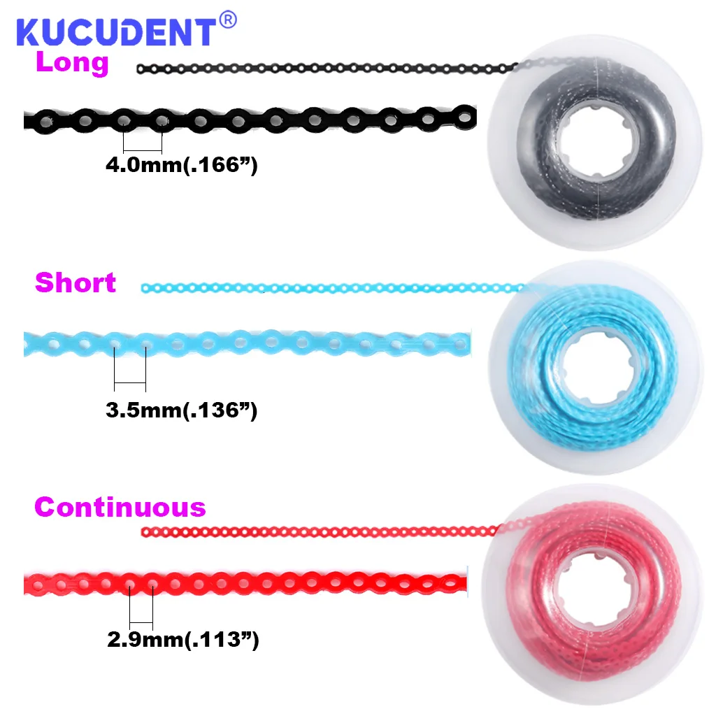 KUCUDENT 15feet/Roll Dental Orthodontic Elastic Ultra Power Chain Rubber Band Long/Short/Continuous Type 4.57m/Roll Dental Power Chain Dental Orthodontic Material