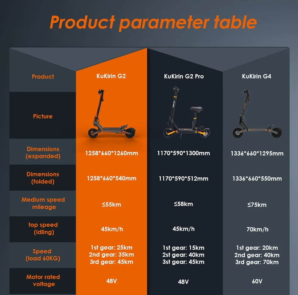 KuKirin G2 e-scooter optimizes the material and structural design on the basis of asking the strength and stability of the body, that the net weight of the product is controlled at about 26kg. The product is easy to carry and store, and the folded size is compact, which is very convenient for commuting to get off work or putting it in the trunk of a car.