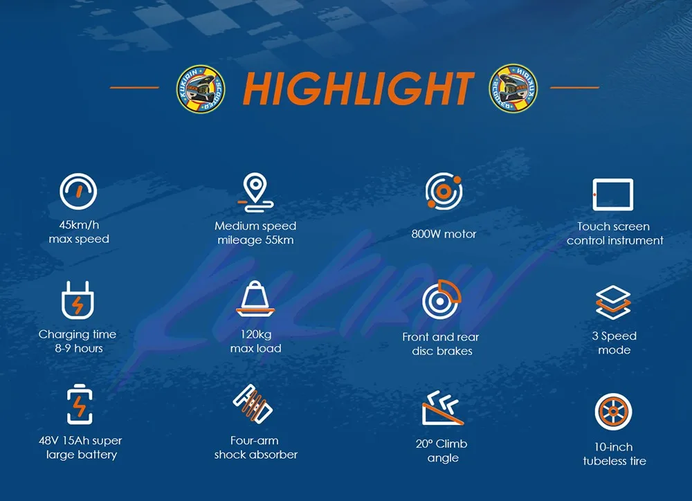 KuKirin G2 off road electric scooter is equipped with a high definition intelligent touch screen. Through this delicate and sensitive screen, you can intuitively obtain the real-time status information of the vehicle, including but not limited to driving speed, remaining power, mileage, and current gear, etc. All key data are clear at a glance. In addition, the touch operation is simple and intuitive. You can switch driving modes, adjust brightness, and even view historical travel records with just a tap, so that every ride is under your control.