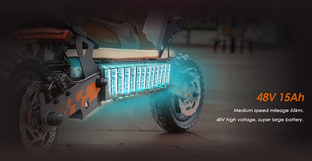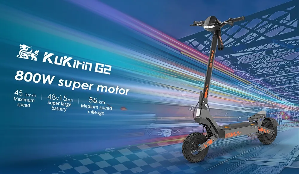 KuKirin G2 foldable electric scooter is equipped with a 48V15Ah high performance lithium battery, which can provide a battery life of