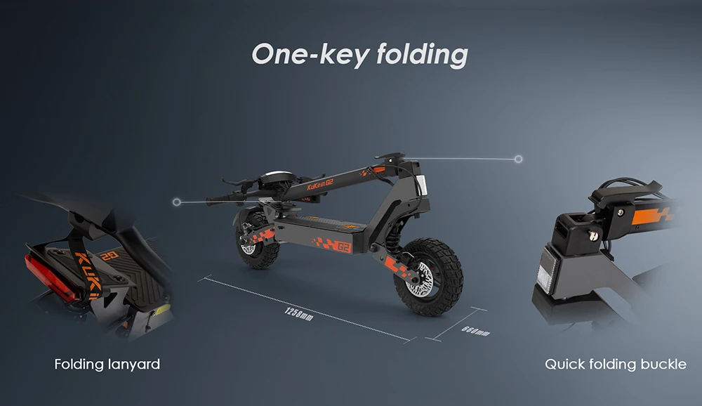 KuKirin G2 folding electric scooter has carefully designed a one-button quick folding mechanism, which can achieve the folding and unfolding of the Pole in just a few simple steps. Afterfolding, put the streamer on the front of the car around the bottom plate where the tail light is located to firmly lock the frame, avoidaccidental unfolding during transportation, and sense the safety and stability of the user when carrying. The exquisite folding device has been strictly tested and is not easy to lose even if it is folded frequently, providing users with a long-term convenient experience.
