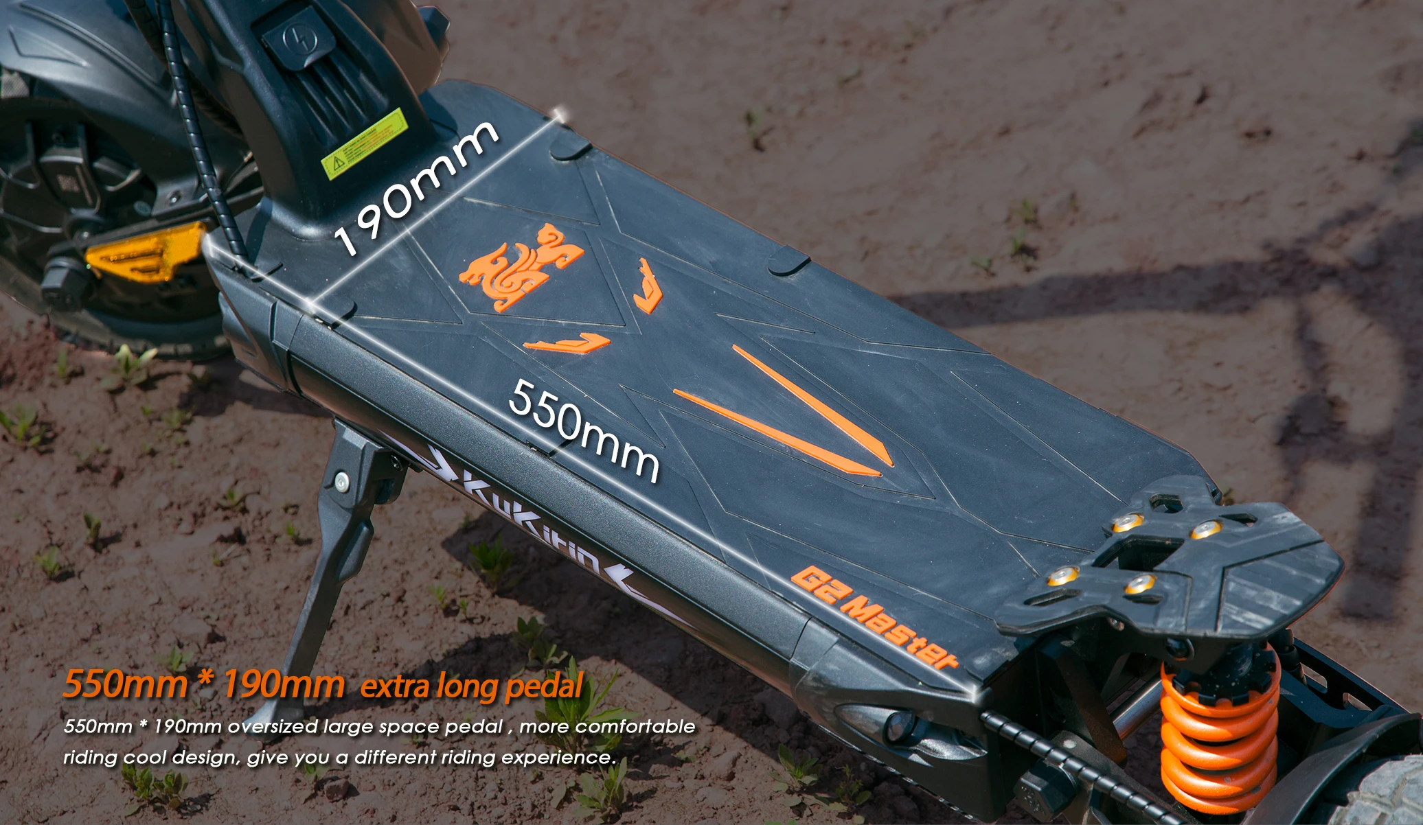 KuKirin G2 Master electric scooter is powered by two 1000W high-performance dual-drive motors that provide strong power,making uphill climbing stress free and allowing drivers to travel more freely through all kinds of terrain,whether it’s flat road or the rugged trail,you can ride with ease.In addition,the dual-drive motors provide better maneuverability and stability,making the driver safer and more comfortable in the driving process.