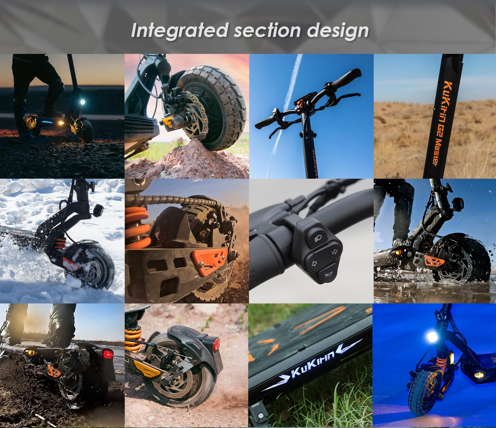 KuKirin G2 Master is made of high-quality aluninum alloy,which makes it’s structure is straong and durable.The strong scooter frame coupled with coupled with a customized folding system provides folding and unfolding stability and enhances the bodywork’s structural strength.This makes the motorized scooter more rugged and able to withstand a variety of usage environments.