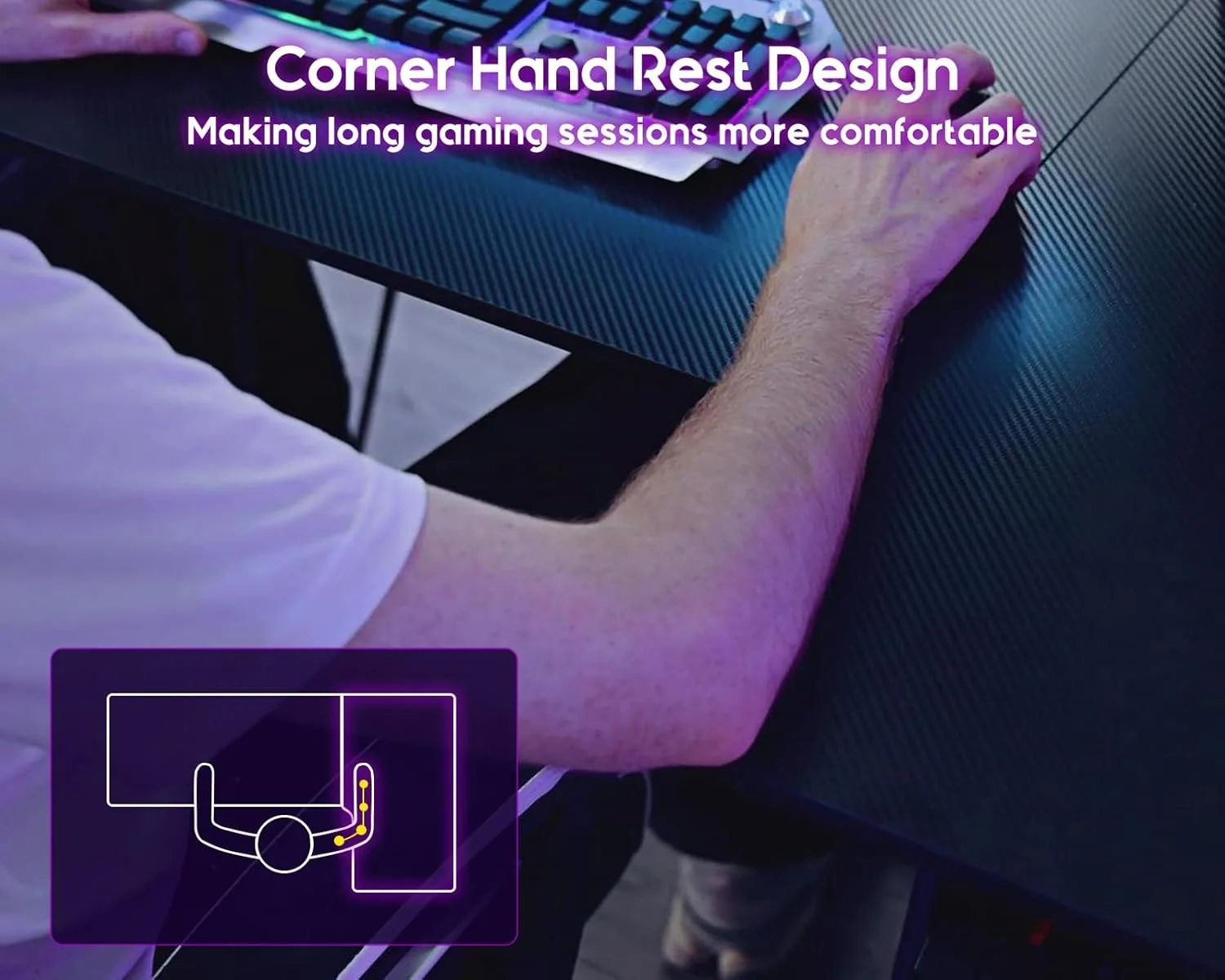 - Small L Shaped Design: Our l shaped gaming desks are specially designed for Gamers. The computer desk has small corner hand rests designed to rest your elbows on, which give an ergonomic gaming experience to each gamer.