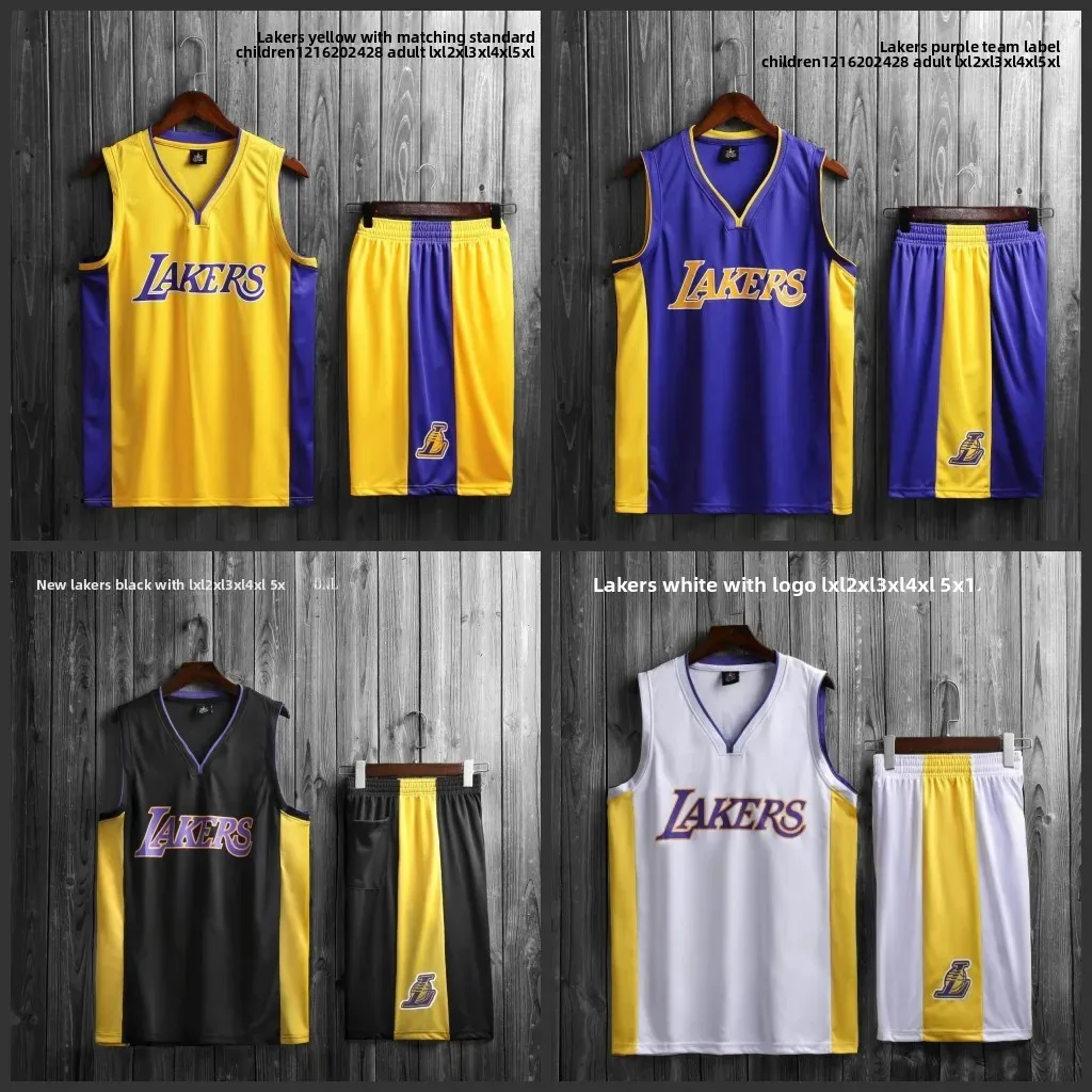 Lakers V-Neck Basketball Jerseys Uniform Set Customizable Numbered Purple Yellow Black White Sports Teamwear from Mainland China