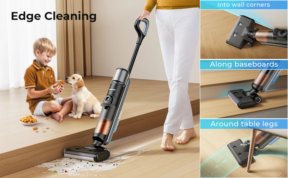 *Edge-cleaning design, no residue: Innovative design allows for thorough cleaning along walls and corners, leaving no dirt behind.
