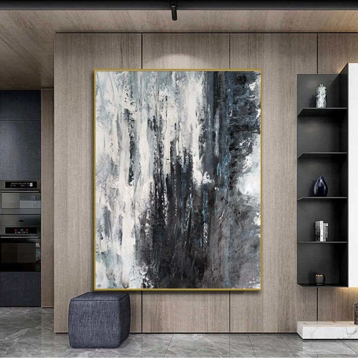 Be the first to review “Large Black White Abstract Hand Painted Oil Painting On Canvas Wabi Sabi Texture Wall Art Modern Minimalist Entrance Wall Decor”